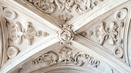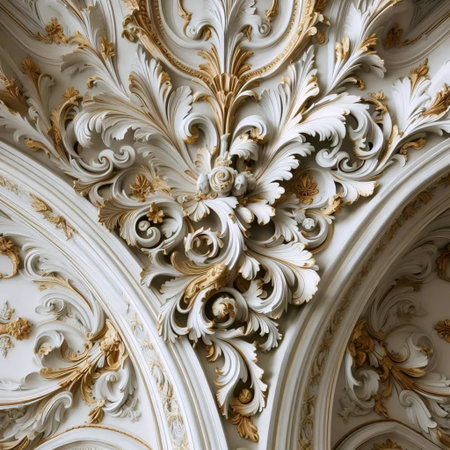 Explore the elegance of ornate plasterwork featuring floral motifs in historical architecture.