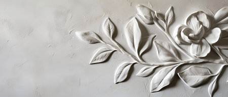 simple modern design subtle, minimalist botanical relief, textured art made of plaster