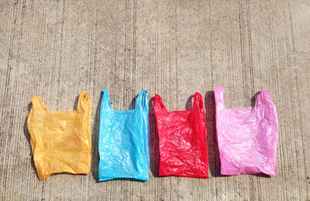 Colorful plastic bag on cement floor