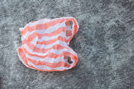Plastic bags on cement floor background.