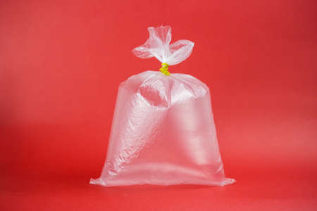 Red plastic bag placed on surface in studio