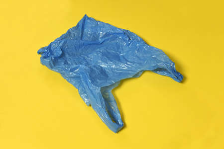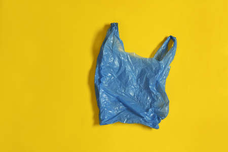 Blue plastic bag on yellow background.