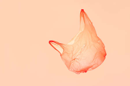 Zero waste concept. Plastic red bag on pink background.