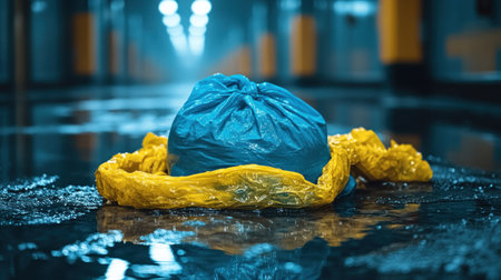 blue plastic bag on yellow background