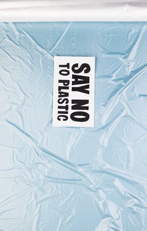 Say No To Plastic on plastic waste background. Concept of saving the planet and environment. Zero waste and eco friendly. Flat lay