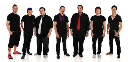 Group of young men standing isolated over white background