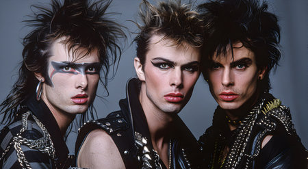 Glam rock band portrait in the 1980s. Big hair and makeup.