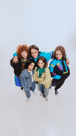 Portrait of a group of young people with punk hairstyle.