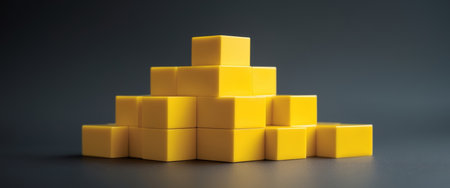 AI Generated. A close up view of a small pile of bright yellow blocks on a black background in a studio shot