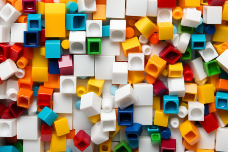 Colorful toy bricks showcase vibrant textures and interlocking patterns for creative play