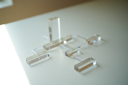 Hand arranges transparent cubes. Concept of creative arrangement and organization.