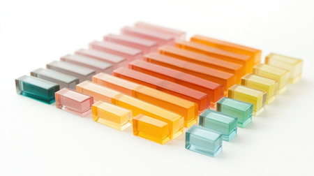 A visually striking arrangement of colorful translucent bars creates an artistic display of light and shadow, perfect for modern design projects and vibrant backgrounds.