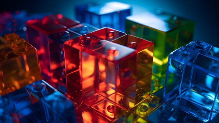Colorful Transparent Building Blocks with Glowing Light Reflections