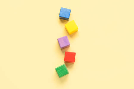 Yellow cube block constructor on a white background with copy space. Construction idea concept.