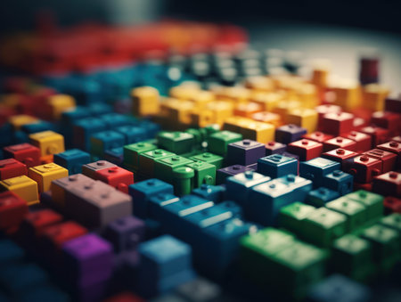 Colorful toy bricks showcase vibrant textures and interlocking patterns for creative play