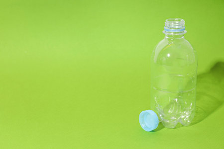 Plastic bottle on a green background. Plastic waste. The concept of environmental pollution.