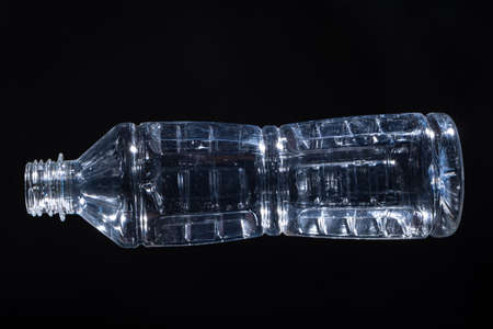 Crushed plastic bottle in black background