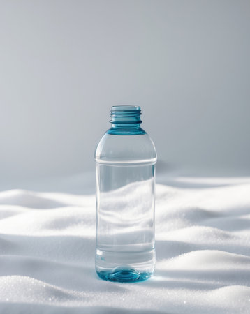 AI Generated. there is a bottle of water that is empty on a white surface
