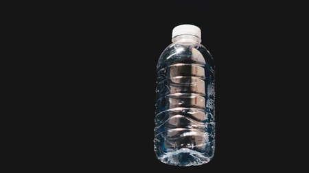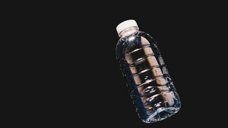 plastic water bottle floating on water on black background Can be easily used in projects. Plastic waste strewn on the water. The concept of waste and plastic pollution