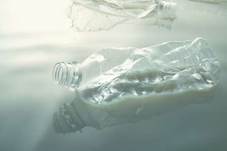 Discarded plastic bottles floating on the surface of the water