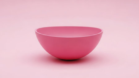 A soft pink background with copy space and an empty black plastic bowl