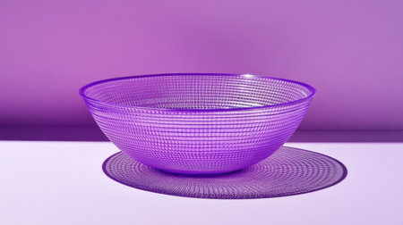 A stylish purple wire bowl rests on a smooth surface, casting a delicate shadow. The modern design complements any minimalistic decor, enhancing the aesthetic.