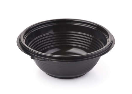 Black empty disposable plastic takeaway bowl isolated on white