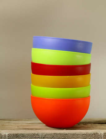 Colorful plastic bowls isolated on white background