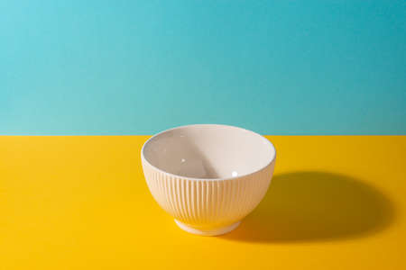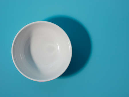 empty white bowl on blue background. minimalist style.