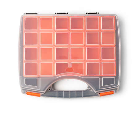 Plastic box tool organizer for nails, screws, bolts and other details.