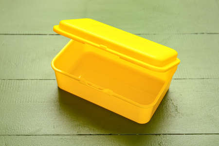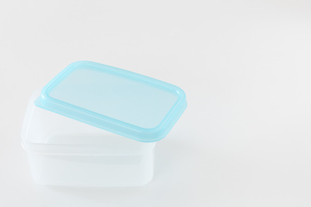 folded white transparent plastic container.stack of plastic containers, boxes.Say no to plastice text and plastice package. Concept of eco pollution.Selective focus