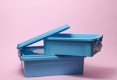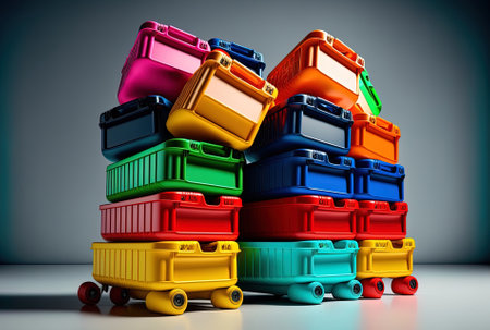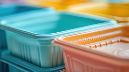 Plastic Storage Boxes in Various Colors generative by Ai.