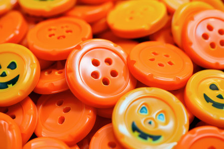 Bright orange buttons featuring pumpkin designs, perfect for Halloween-themed crafts and decorations.