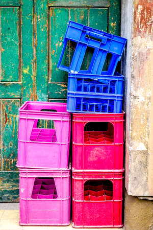 Colour plastic boxes out side