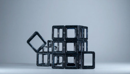 AI Generated. Iridescent glass cubes reflect on dark surface