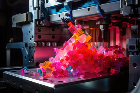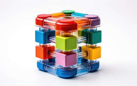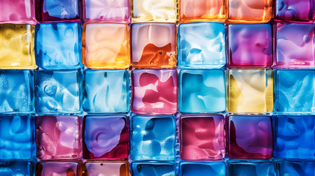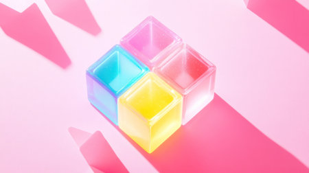 A captivating display of translucent, multicolored cubic shapes arranged in a dynamic composition, creating a visually engaging and abstract study of light.