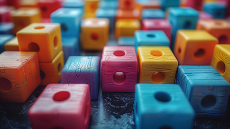 Colorful toy bricks showcase vibrant textures and interlocking patterns for creative play
