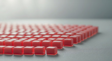 AI Generated. Rows of Small Red Square Tiles on Light Gray Surface