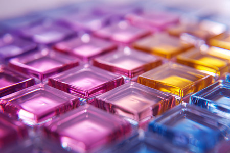 Elegant glass tiles shining with vibrant colors on a modern contemporary background