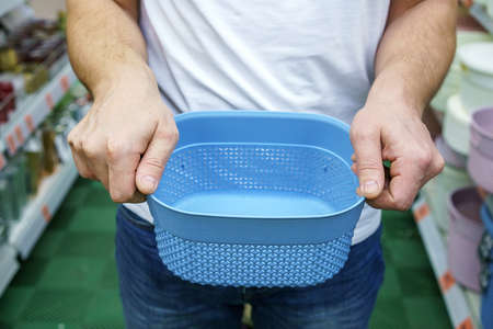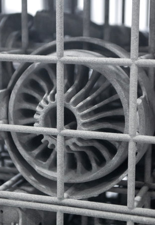 Dishwasher, gray mesh dishwasher. Selective focus