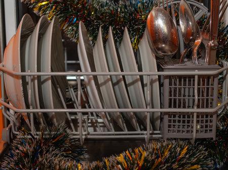washing dishes after the christmas close-up crockery
