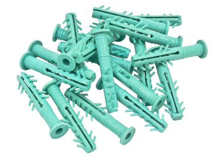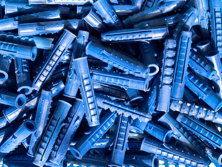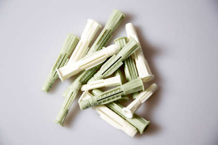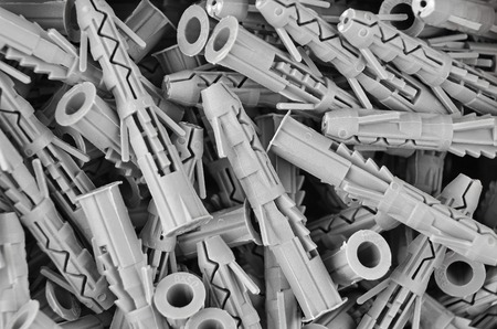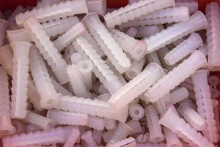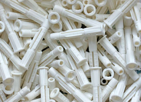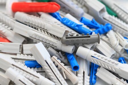 Many plastic cleat, wall plug - also known as anchor, construction tools