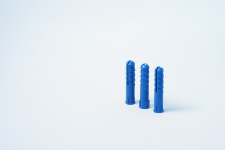 Three blue screw wall plugs