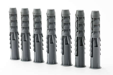Plastic wall plugs for fastener screw. Material made of plastic for construction. Home equipment for repairing