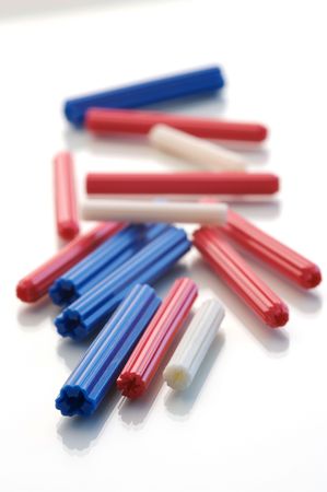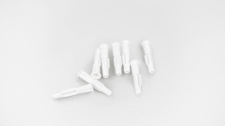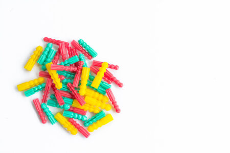Group of plastic dowels on white background