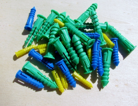 This is are plastic wall plugs in different colors and sizes.