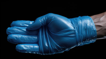 A detailed view of a gloved hand showing the texture and sheen in subdued lighting, emphasizing cleanliness.