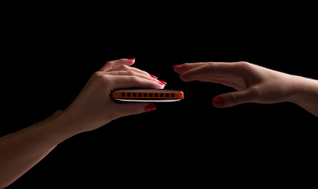 Mouth harmonica country blues on a black background.
