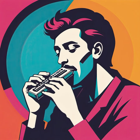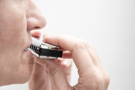 Musician playing a blues harmonica creating a melancholic sound