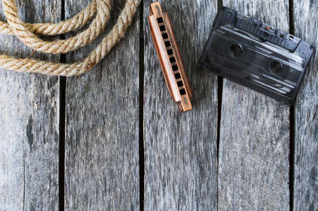 Harmonica and an old audio cassette tape
